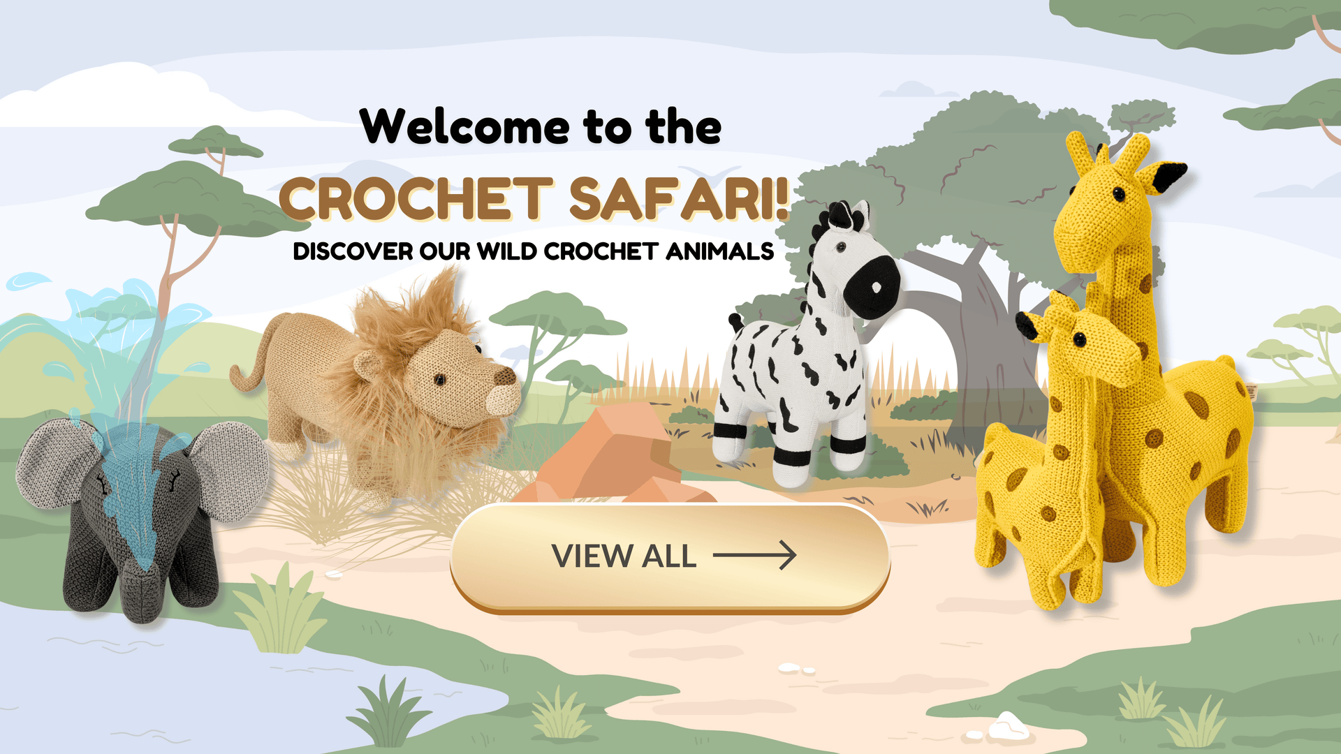 Bunte handgehäkelte Tiere in verschiedenen Größen und Formen